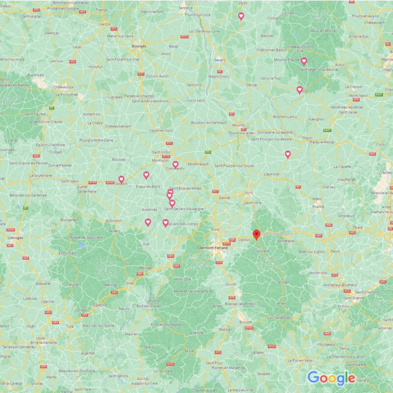 Een kaartje van de regio waar wij zoeken. Een ruim bemeten stuk natuur in het prachtige Frankrijk waar we twee weken in rondtoeren om onze potentiële toekomstige woonplek te zoeken.