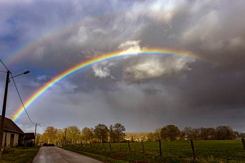 De lente begint hier met nachtvorst, een betoverende, wit bevroren zonsopkomst vleit zich over het landschap, zachtroze-oranje gekleurd met daaronder witte weilanden omringd en onderbroken door flarden mistige bomen en heggen.