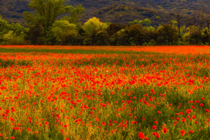 Na een lange rit halen we ons doel en we installeren ons op een camperplaats even buiten de stad Nîmes op een Domaine. Een statige oprijlaan met aan het eind daarvan een gesloten hek is niet echt uitnodigend, maar reviews geven aan dat het hek altijd gesloten is en dat je gewoon even moet aanbellen en een plekje vragen. Dát doen we dan ook maar en binnen no-time zitten we tussen gele, paarse, witte en rode bloemen op een veld aan de koffie. Wát een rust en ruimte! Heerlijk! Vier dagen vrij! Ik heb stiekem een paar bloempjes in het veld geplukt en in een glas water op tafel gezet.