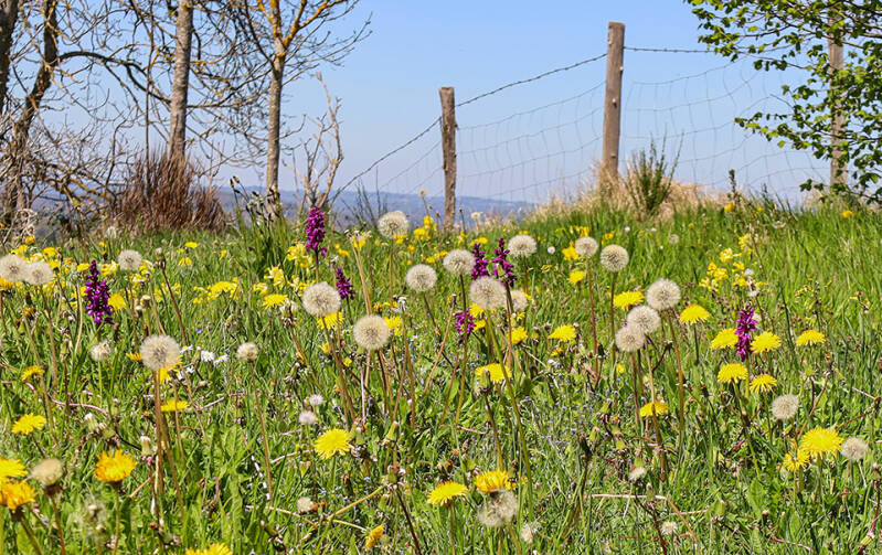Ze blijven daarna twee nachten bij ons en we hebben dus een dag tijd om hen onze omgeving te laten zien. Het mooiste weer van de wereld begeleidt ons naar Puy de Mouffle waar we ons aan een picknicktafel tussen de bloemen installeren met brood, paté, kaas en worst uit de Auvergne, melk en een fles rosé! Hoe Frans kun je het (s)maken? Een fantastisch uitzicht op de Chaine des Puys en de nog besneeuwde Puy de Sancy maakt het compleet!