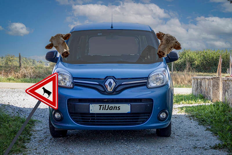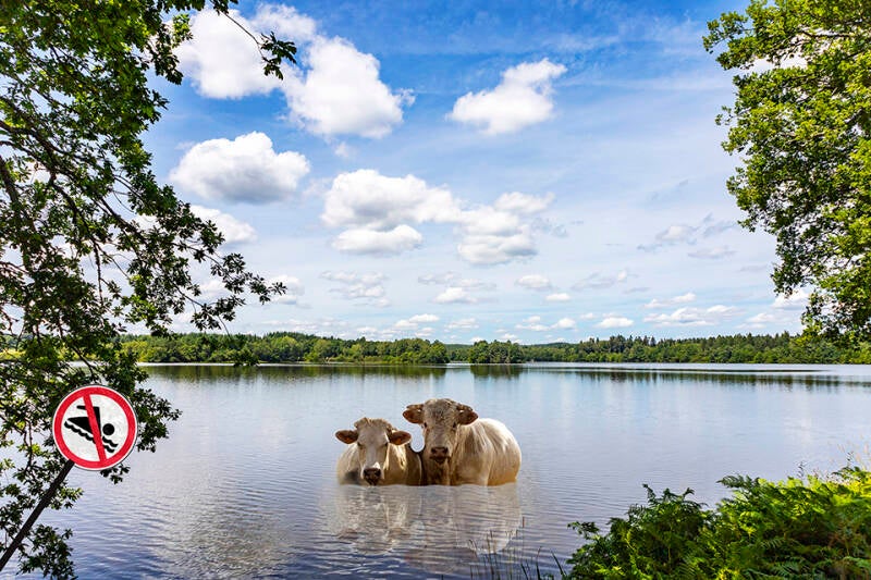 In de middag is het in de kamer lekker koel om bezig te gaan met de challenge en ik vind het maken van dit soort foto's wel een uitdaging! Met een selfie - zonder bril - wat bewogen landschappen, de koeien en zelfs een foto van onze auto ga ik aan de slag en ik begin er steeds meer lol in te krijgen. De meeste probeersels belanden in de "delete-bak", maar een paar gebruik ik voor de challenge. Wat grapjes hou ik ook wel van, ik plaats twee koeien in onze auto, maak in de takken van een spar een koeienkop en laat een stier met koe zwemmen in Etang Neuf, en na het plaatsen van deze foto ontvang ik leuke reacties in mijn mailbox. Ach, een grapje hoort erbij, nietwaar?