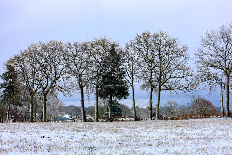 Als ik uit het raam kijk zie ik een witte wondere wereld. Wat mij betreft blijft dat even zo, het is zo'n mooi gezicht over het veld. Zo te zien aan de donkere luchten komt er nog meer!