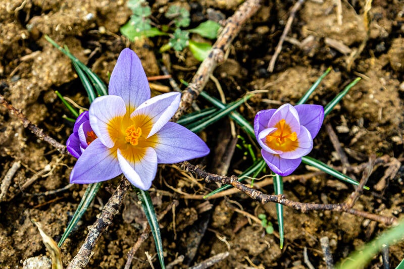 De warme weken van de afgelopen tijd zorgen ervoor dat krokussen al in volle bloei staan, dat de tulpen hun kopjes boven de grond uitsteken en ik zie ook hier en daar wat viooltjes. Het wordt nog een verrassing wat er straks allemaal gaat bloeien; ik heb op verschillende plekken bollen geplant, maar wáár precies....??