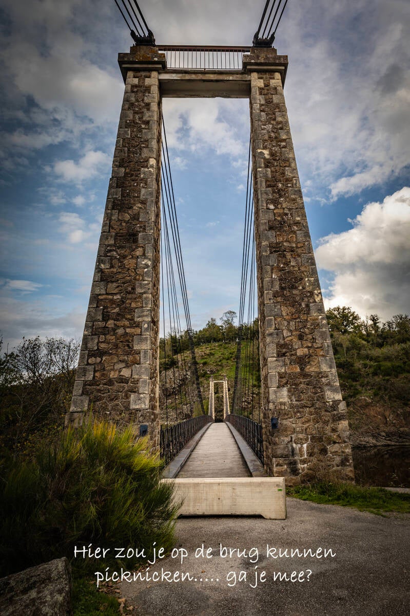 We rijden langs de gorges van de rivier de Tardes en de Vouaize, we lopen over de Pont Suspendu de Saint-Marien, een oude hangbrug en wandelen daarna omhoog naar een eenzaam kapelletje, de Chapelle de Sainte-Radegonde. Op deze plek kun je heerlijk picknicken met uitzicht over het water en het afwisselende heuvellandschap. Wij hebben uiteraard al geluncht, dus deze plek houden we in gedachten voor een volgende keer! Een zeer geslaagd tochtje.