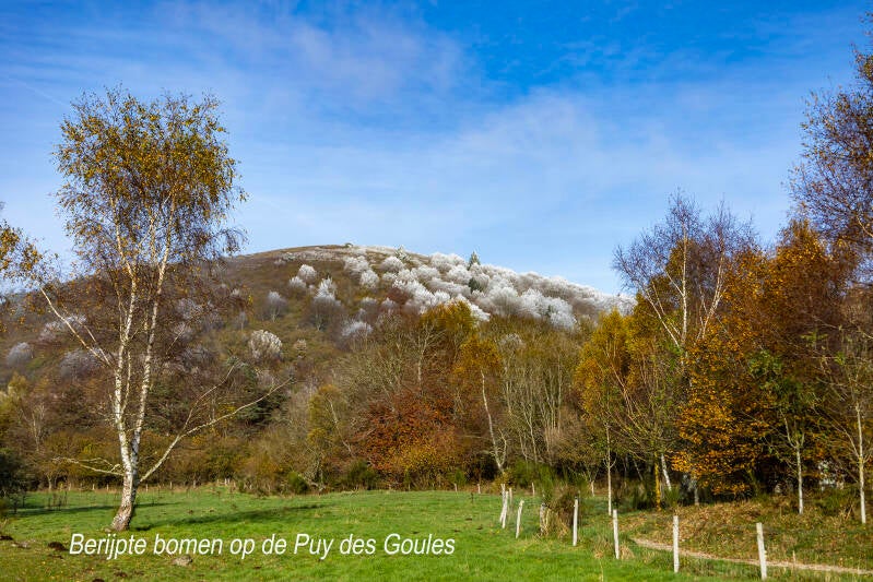 De berijpte bomen op de Puys bieden onderweg een sprookjesachtig uitzicht... práchtig! Dat zie je in Nederland echt niet!