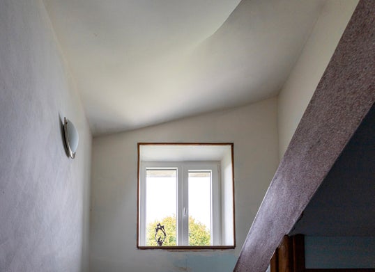 Binnen is er werk aan het trappenhuis. De bedoeling is dat er op de overloop een toilet wordt geplaatst en de afvoer daarvan moet in de gang worden weggewerkt!