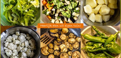 Bloemen, planten, kruiden, groenten maar ook onkruidjes, droge struiken en zielig ogende aardbeienplantjes en tomatengroeiseltjes vind je in onze tuin!